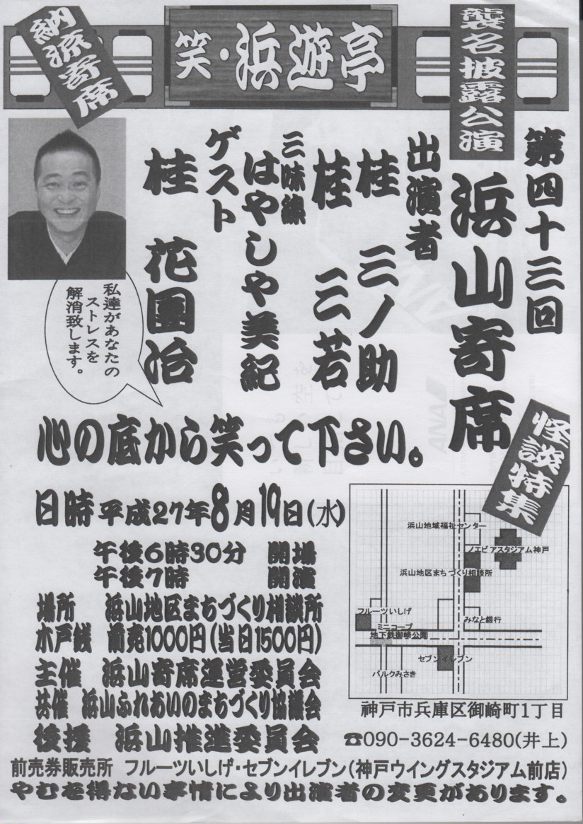 第43回「浜山寄席」~花團治襲名披露公演~ 平成27年8月19日(水)18時30分開場・19時開演