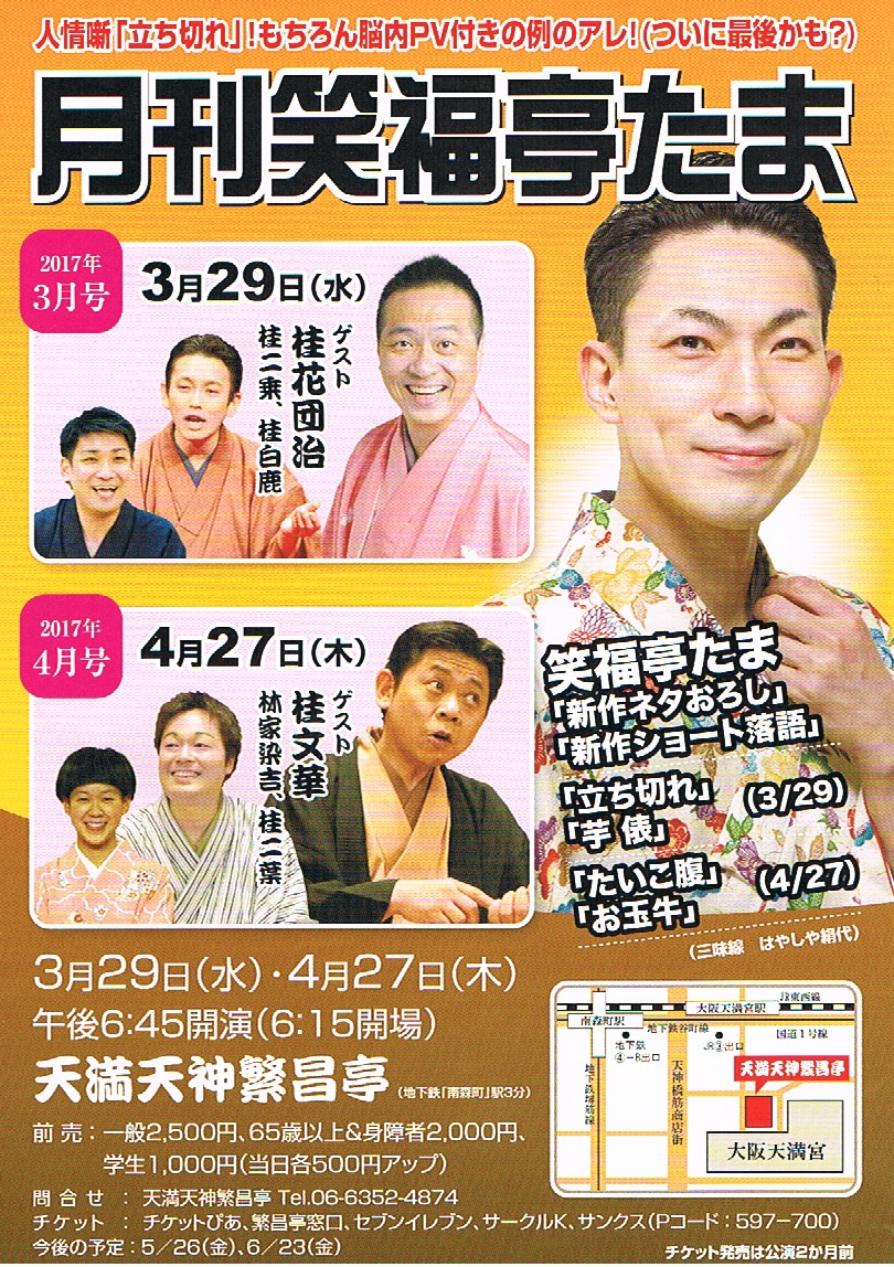 チケット販売:繁昌亭窓口、チケットぴあ、セブンイレブン、サークルK、サンクス (Pコード:597-700)