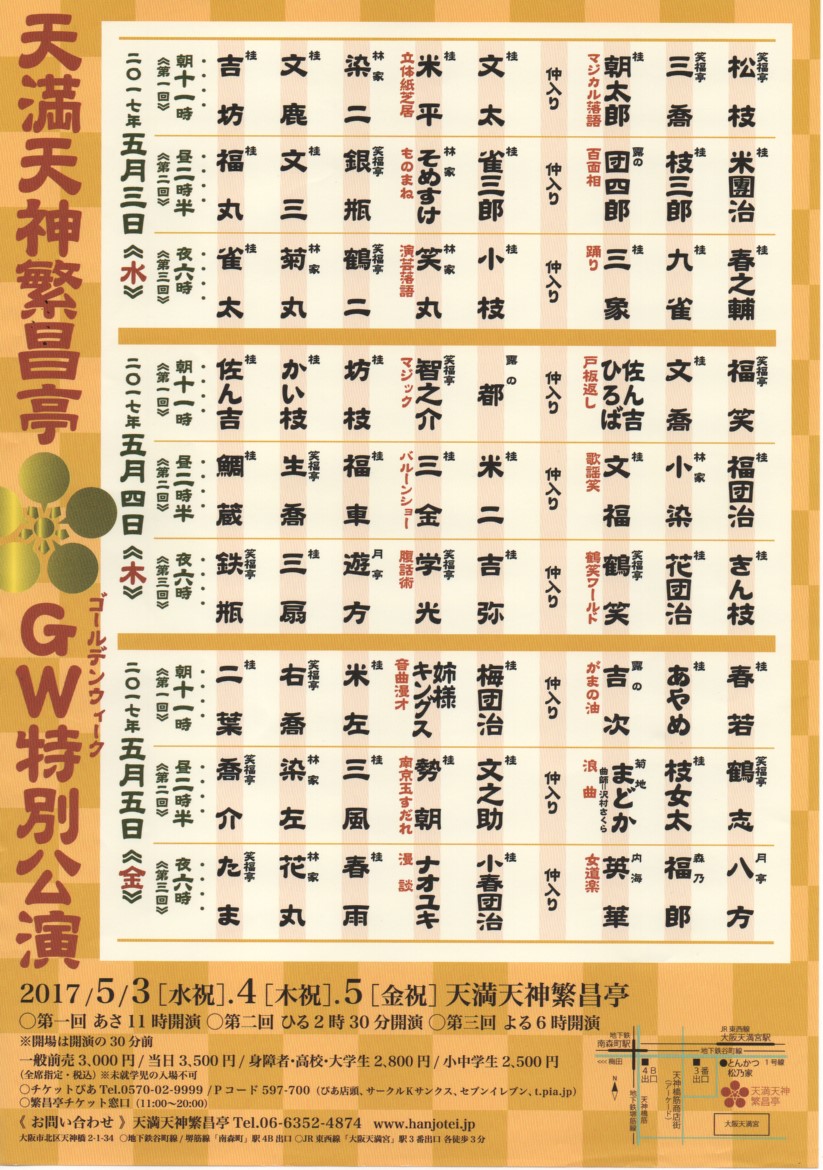天満天神繁昌亭 「ゴールデンウィーク特別公演」 5月4日(木・祝)第三回公演 18:00〜