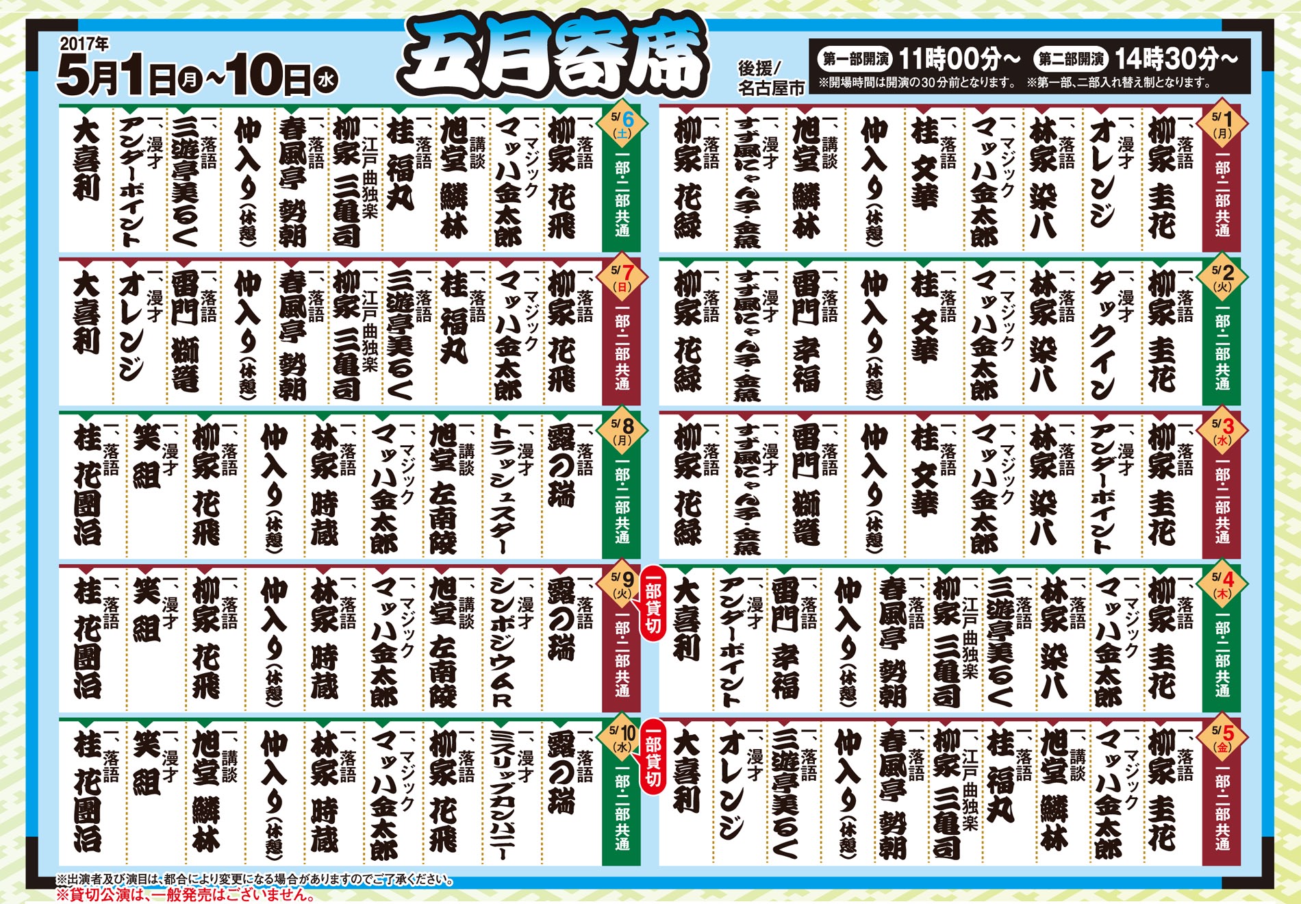 大須5月番組大須演芸場チラシ201705大須演芸場 五月寄席