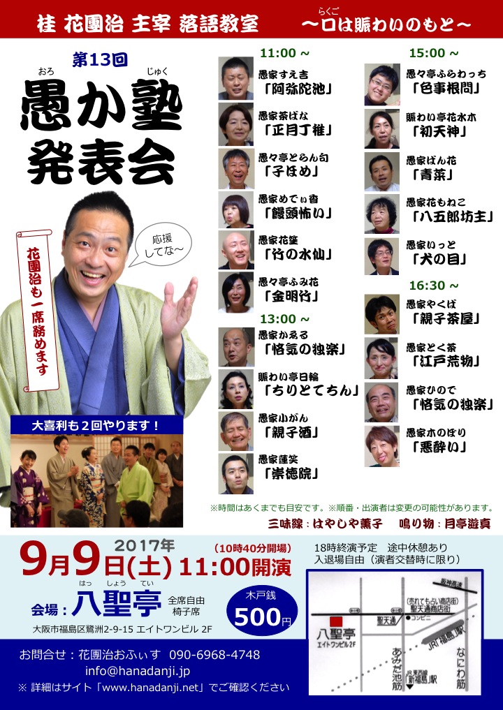 花團治が主宰する落語教室「愚か塾」の発表会です。