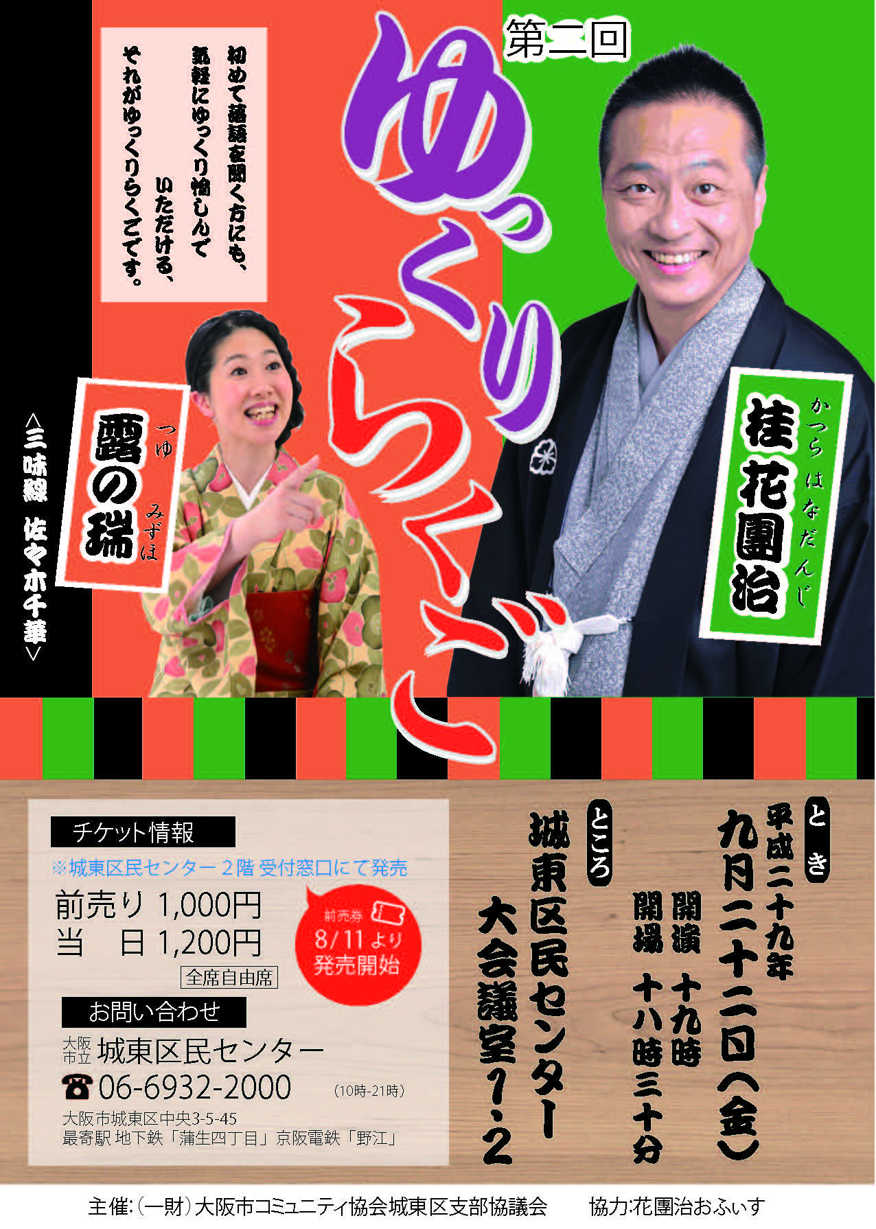 チケット窓口:城東区民センター2階 受付窓口にて発売(8月11日より発売開始)