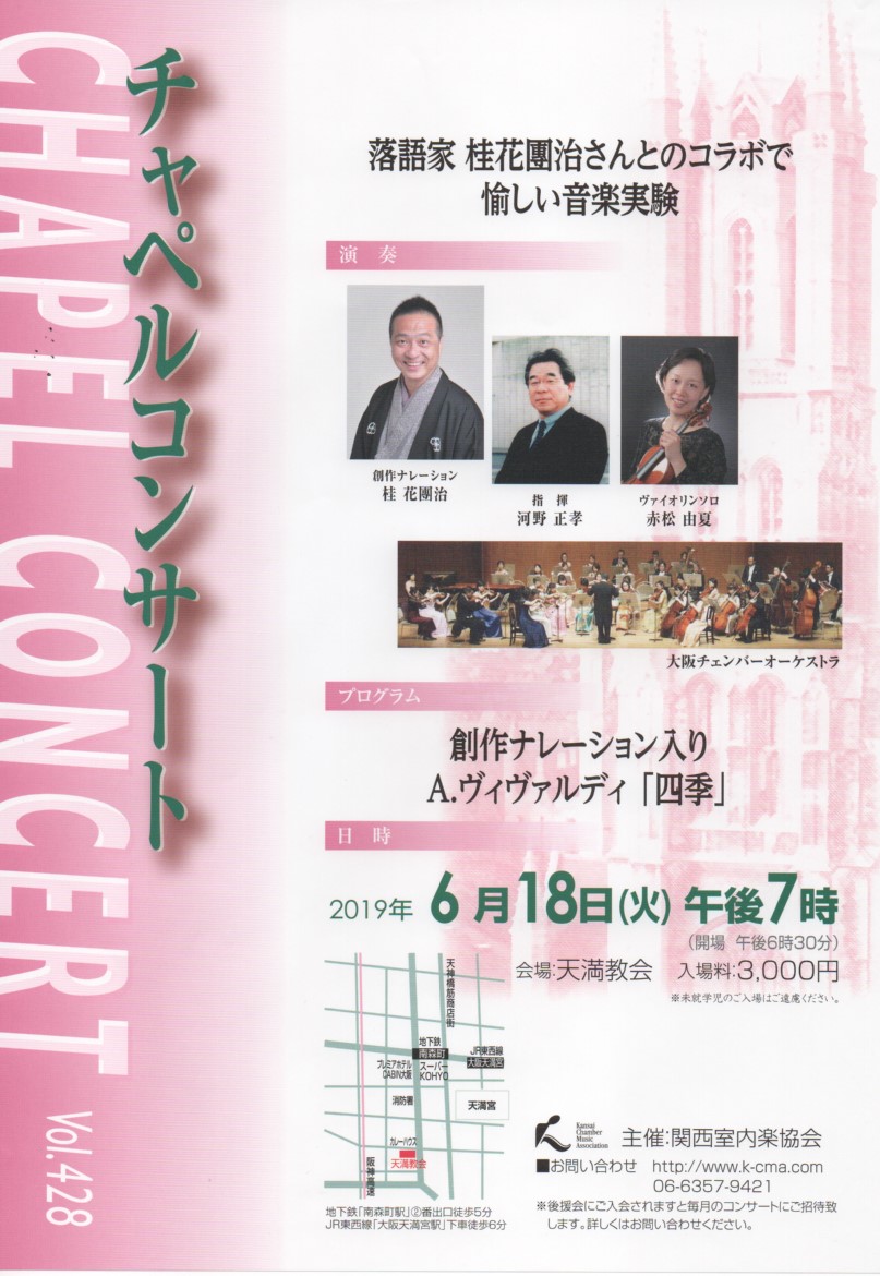 またまた天満協会のチャペルコンサートに花團治が登場します!