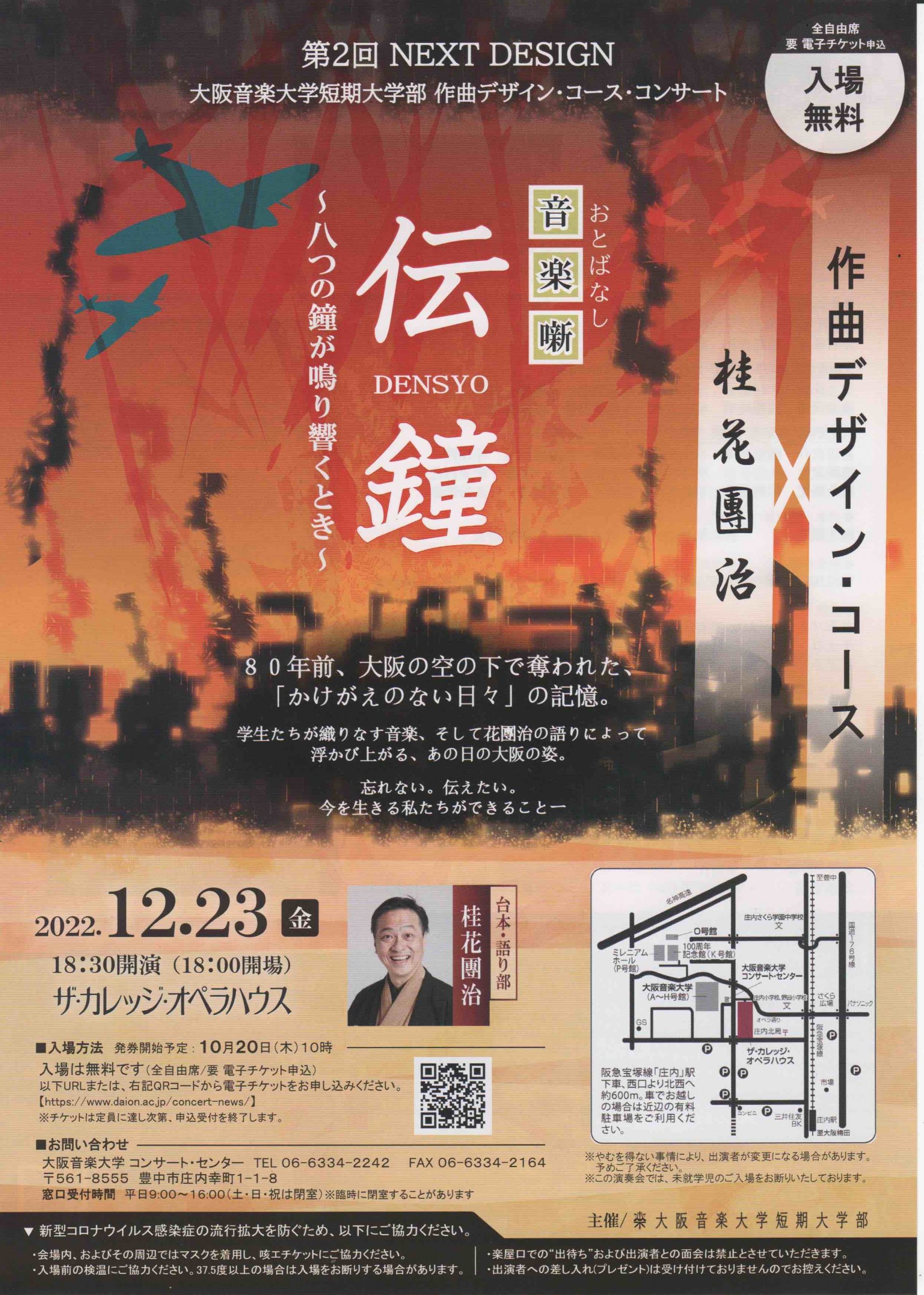 学生たちが織りなす音楽、そして桂花團治の語りによって浮かび上がる、あの日の大阪の姿