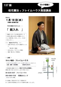 身辺雑記から落語会の四方山ばなし……花團治のわがまま気ままなワンマントーク。 花團治に続いて、落語や狂言・大道芸などの台詞をオウム返しによる声出しなどなど。 一回完結型なので、落語と全くご縁のなかった方もお気軽にご参加ください。 最後に、落語も一席お付き合いいただきます。