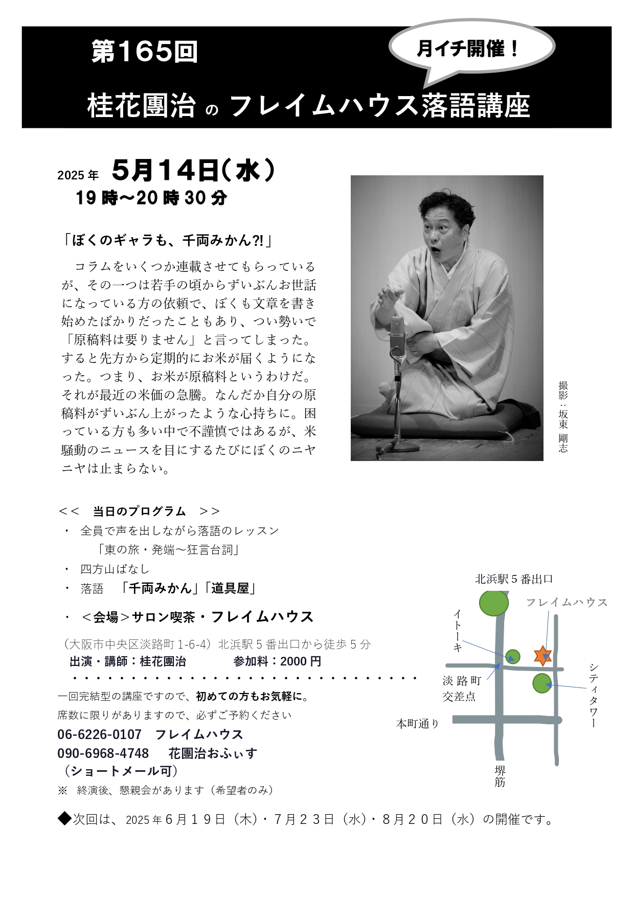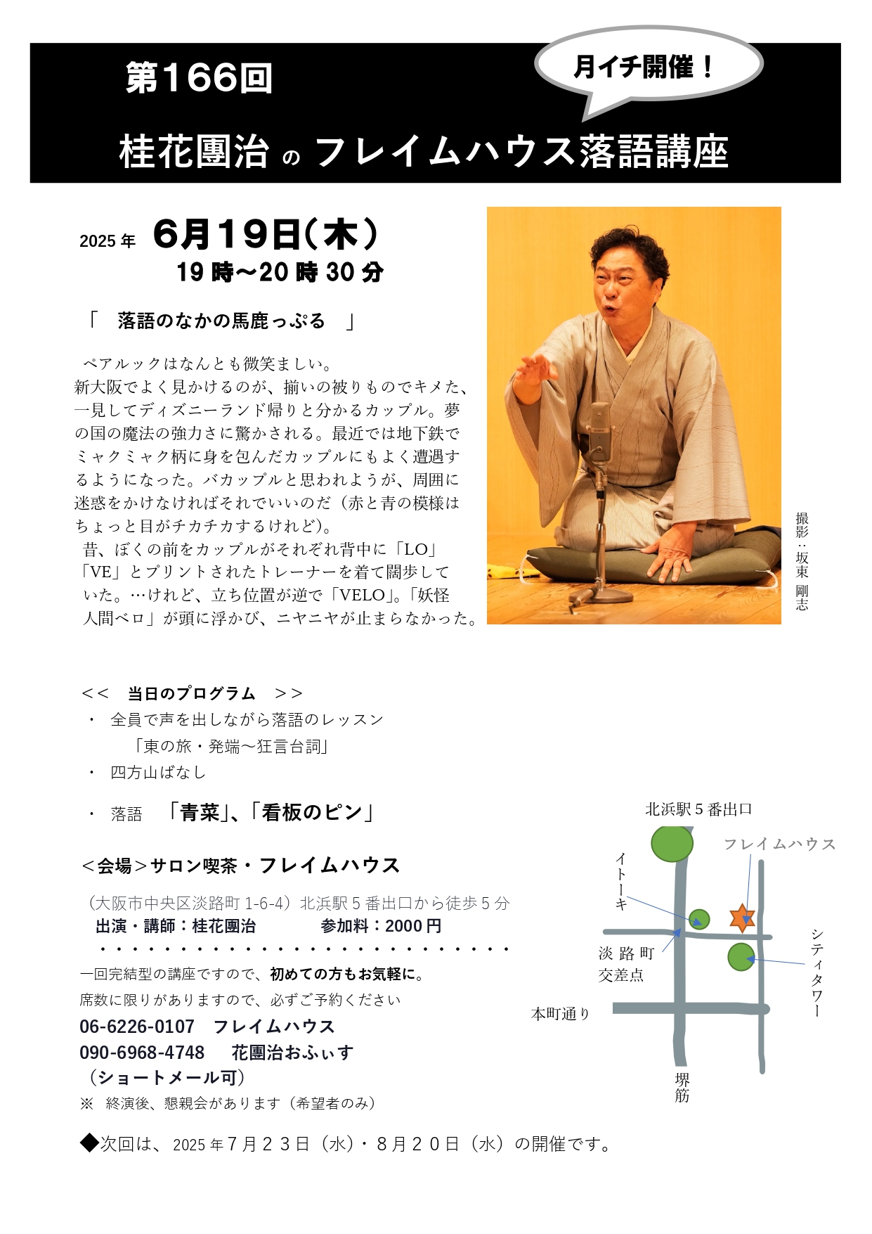 「月例・フレイムハウス落語講座・其の166」 日時:6月19日(木)19時~20時30分 場所:北浜・ギャラリー喫茶「フレイムハウス」 費用:2,000円 身辺雑記から落語会の四方山ばなし……花團治のわがまま気ままなワン […]