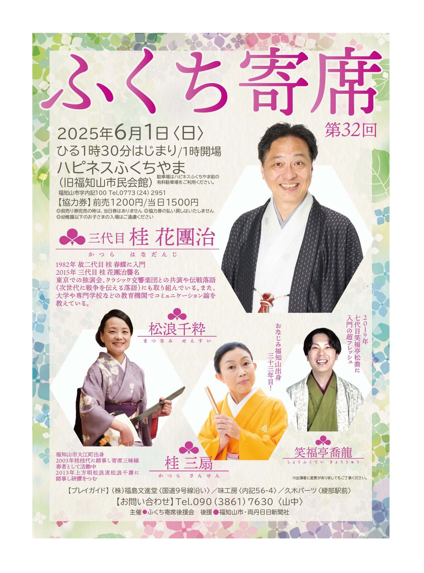「ふくち寄席」第32回 日時:6月1日(日)ひる1時30分はじまり(1時開場) 会場:ハピネスふくちやま(旧福知山市民会館) 料金(協力券):前売1,200円/当日1,500円 出演:桂花團治、桂三扇、笑福亭喬龍、松浪千 […]