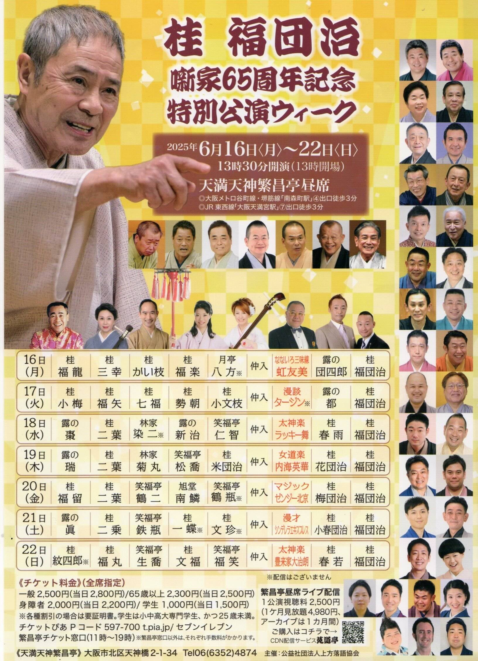 「桂福団治 噺家65周年記念特別公演ウィーク」 日時:6月19日(木)13時30分〜(13時開場) 場所:天満天神繁昌亭 番組: 露の瑞/桂二葉/林家菊丸/笑福亭松喬/桂米團治~仲入~内海英華(女道楽)/桂花團治/桂福團 […]