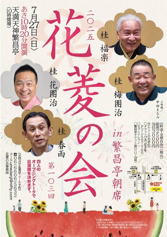第103回「花菱の会」in 繁昌亭朝席 日時:7月27日(日)あさ10時20分はじまり(10時開場) 会場:天満天神繁昌亭 チケット:前売2,500円、当日3,000円(全席自由) ご予約・お問合せ:花菱の会事務局 06 […]