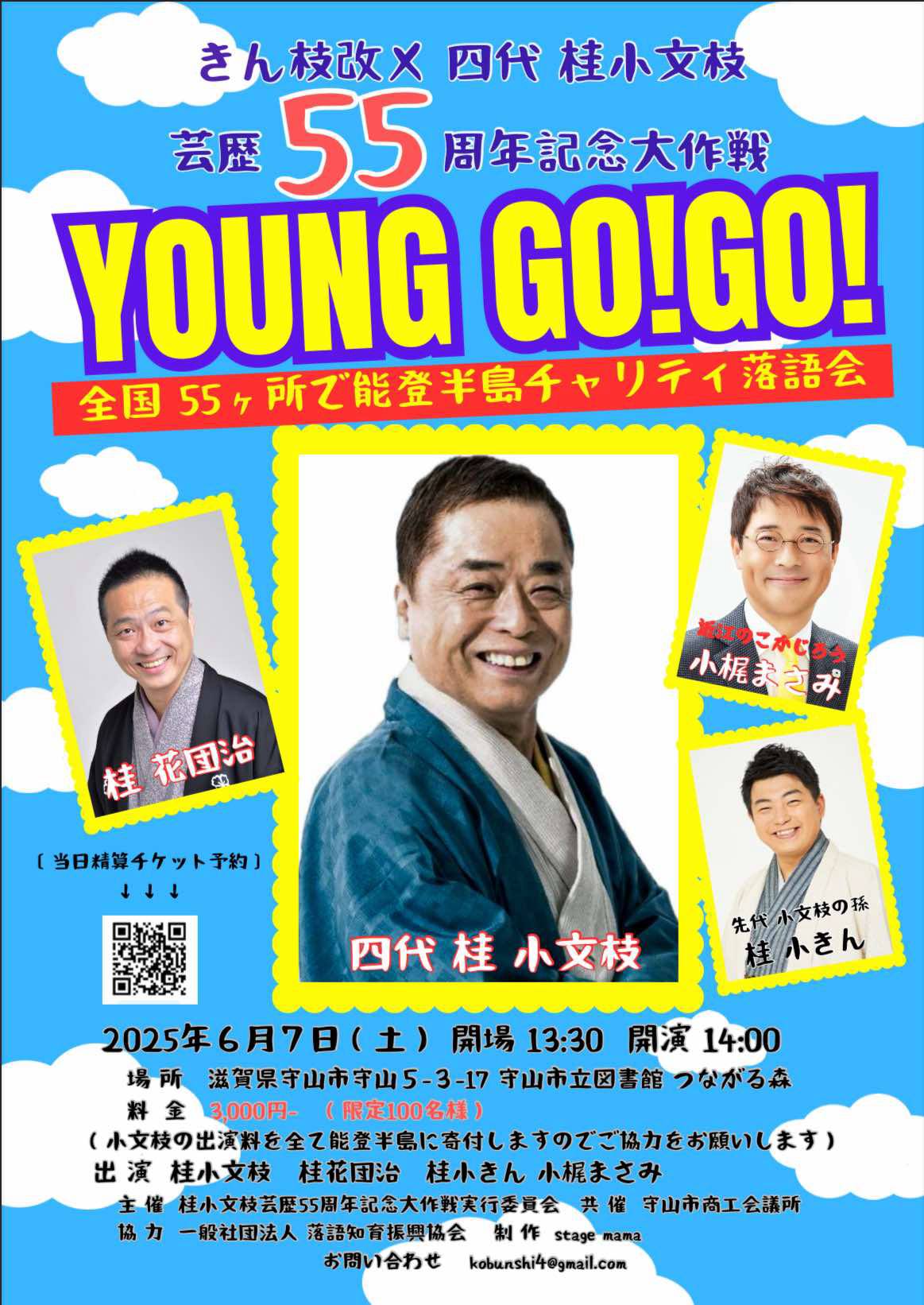 きん枝改メ四代桂小文枝 芸歴55周年記念大作戦 「YOUNG GO!GO! 全国55ヶ所で能登半島チャリティ落語会」 日時:2025年6月7日(土) 午後14時開演 (13時30分開場) 場所:守山市立図書館 つながる森 […]