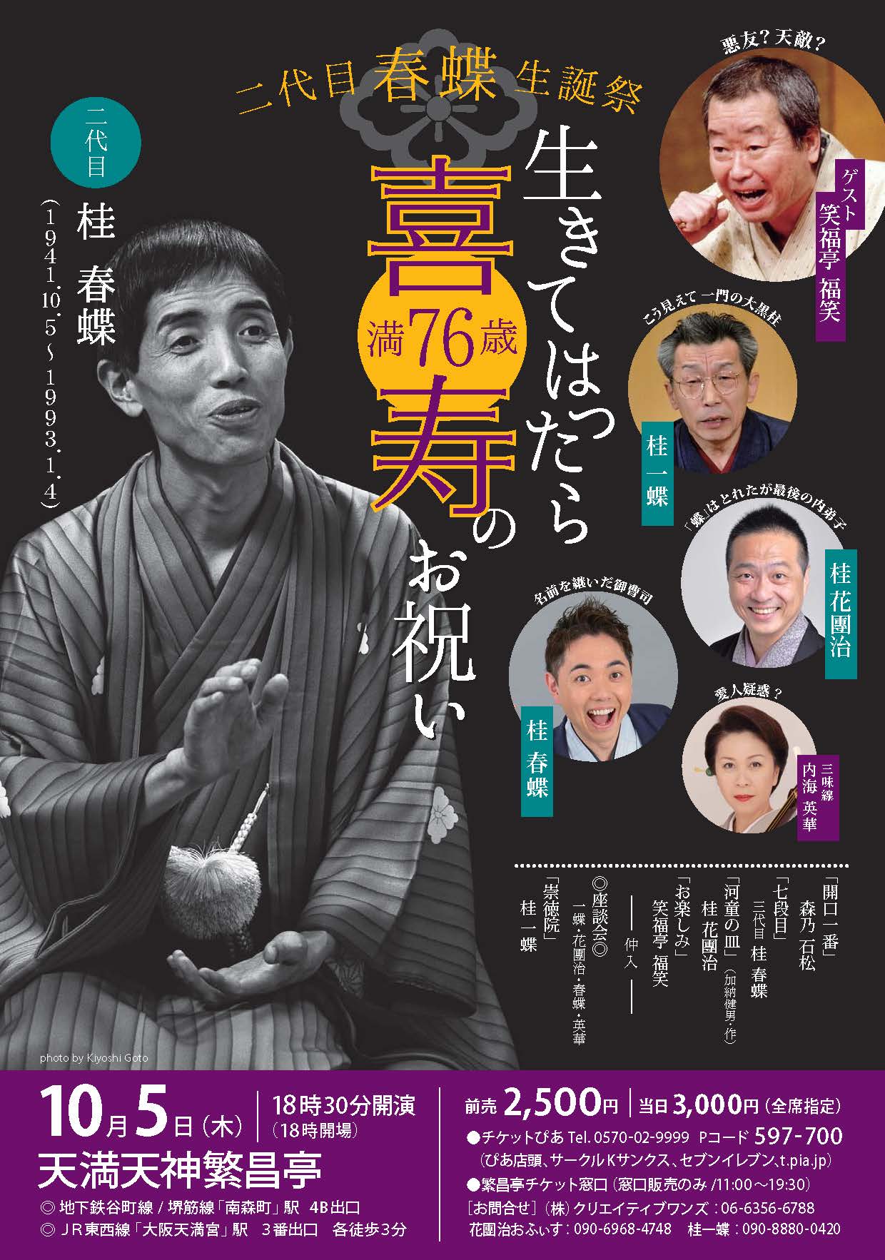 【当日券は17時半から】10/5「生きてはったら喜寿のお祝い」二代目春蝶生誕祭