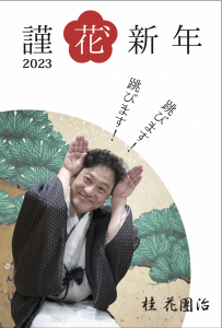 ☆謹賀新年☆跳びます!跳びます! 公開済み: 2023年1月5日更新: 2023年1月5日作成者: nigiwaiyaカテゴリー: 更新情報 明けましておめでとうございます。 昨年11月の「芸歴40年おまけに還暦」記念独演会が一つの区切りとなり、とても晴れやかな心持ちで新年を迎えました。 今年からは新たな花團治をつくっていくつもりで挑戦を重ねたいと思います。ぜひご期待ください。 本年もどうぞよろしくお願い申し上げます。 この投稿へのコメント コメントはありません。 コメントを残す コメントをキャンセルメールアドレスが公開されることはありません。 ※ が付いている欄は必須項目ですコメント ※ 名前 ※ メール ※ サイト 次回のコメントで使用するためブラウザーに自分の名前、メールアドレス、サイトを保存する。 Δ この投稿へのトラックバック トラックバックはありません。 トラックバック URL